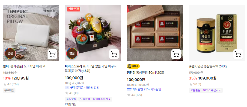 이왕 추석 선물을 생각하고 계시다면 가장 할인 혜택과 적립혜택이 많은 24/08/02 (금)~08/23 (금)에 사전예약하셔서 더 많은 혜택을 보시기 바랍니다.