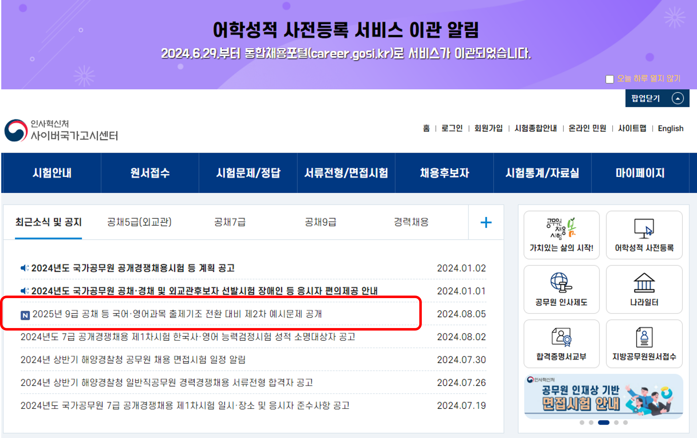 인사혁신처는 2025년 9급 공무원 국어, 영어 시험을 지식암기 위주에서 현장 직무중심의 문제 유형으로 출제한다고 발히면서 내년 시험 응시자들에게 많은 도움이 되길 바란다고 말하였습니다.